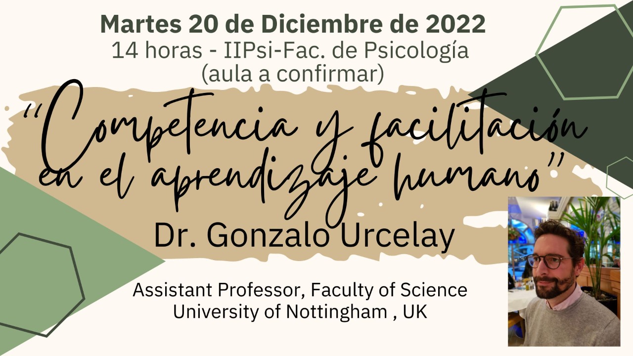 L@s invitam@s a la conferencia COMPETENCIA y FACILITACIÓN en el APRENDIZAJE HUMANO, a cargo del Dr. Gonzalo Urcelay (University of Nottingham, UK).