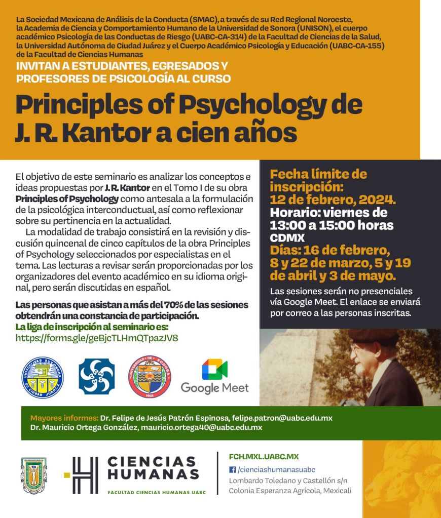 Tod@s invitad@s al curso/seminario *Principles of Psychology de J. R. Kantor a cien años*.