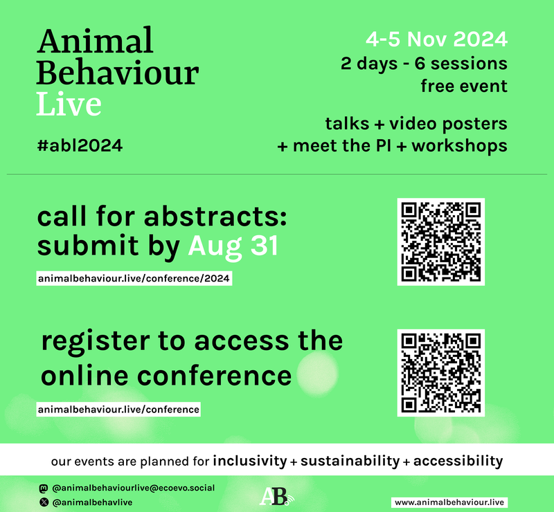 Les compartimos la invitación para participar de la Animal Behaviour Live: Annual Online Conference 2024 que tendrá lugar los días 4 y 5 de Noviembre de 2024.