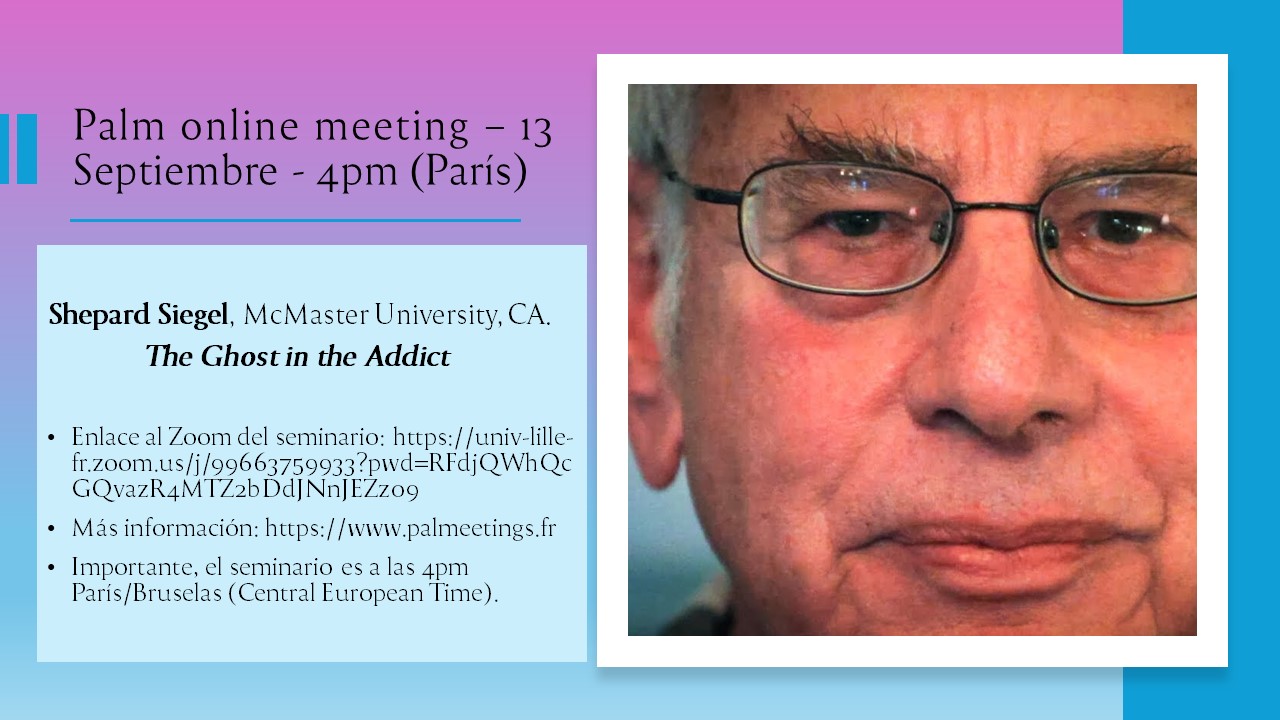Tod@s invitad@s al próximo seminario online PALM que estará a cargo del Dr. Shepard Siegel, quien presentará *The Ghost in the Addict*.