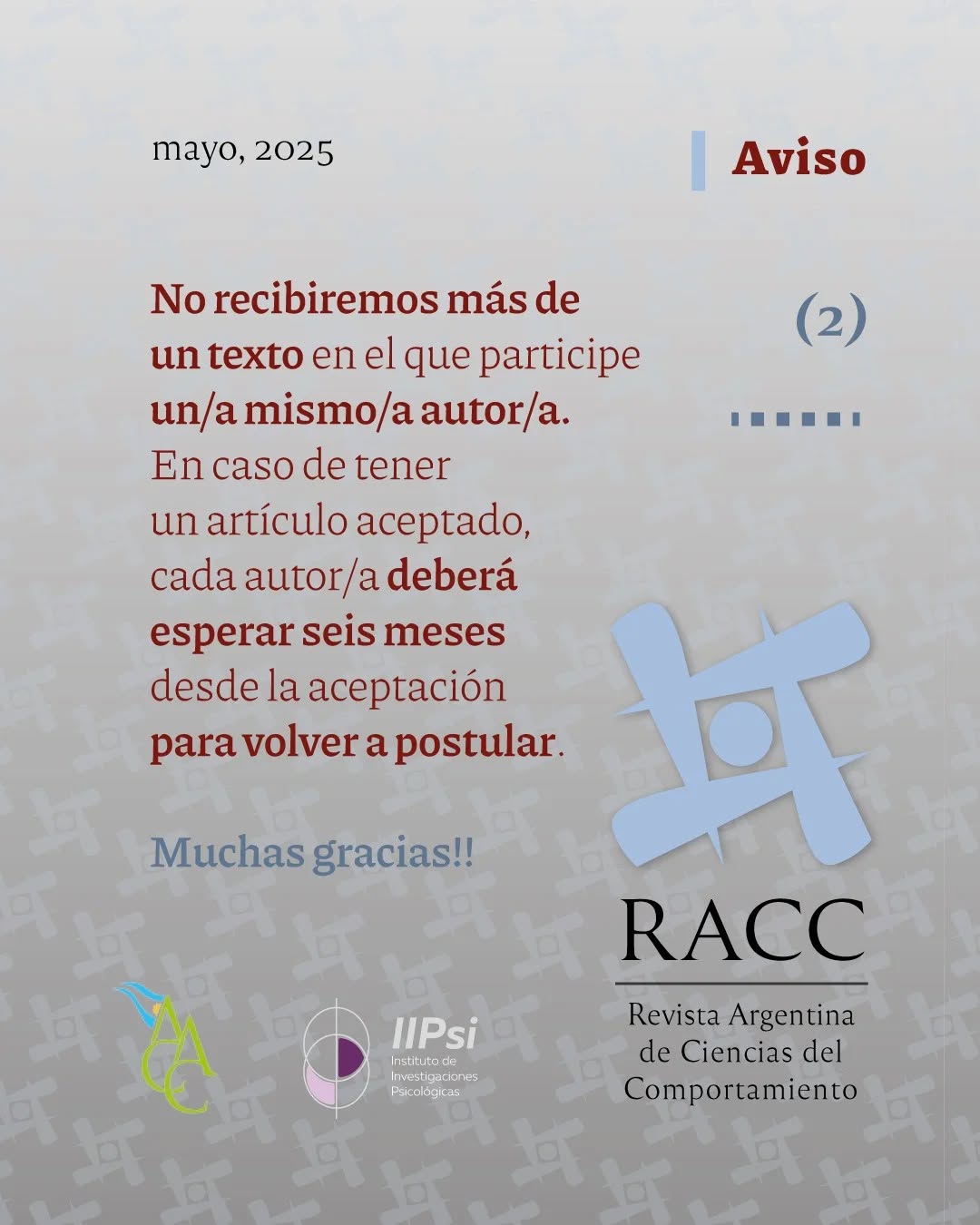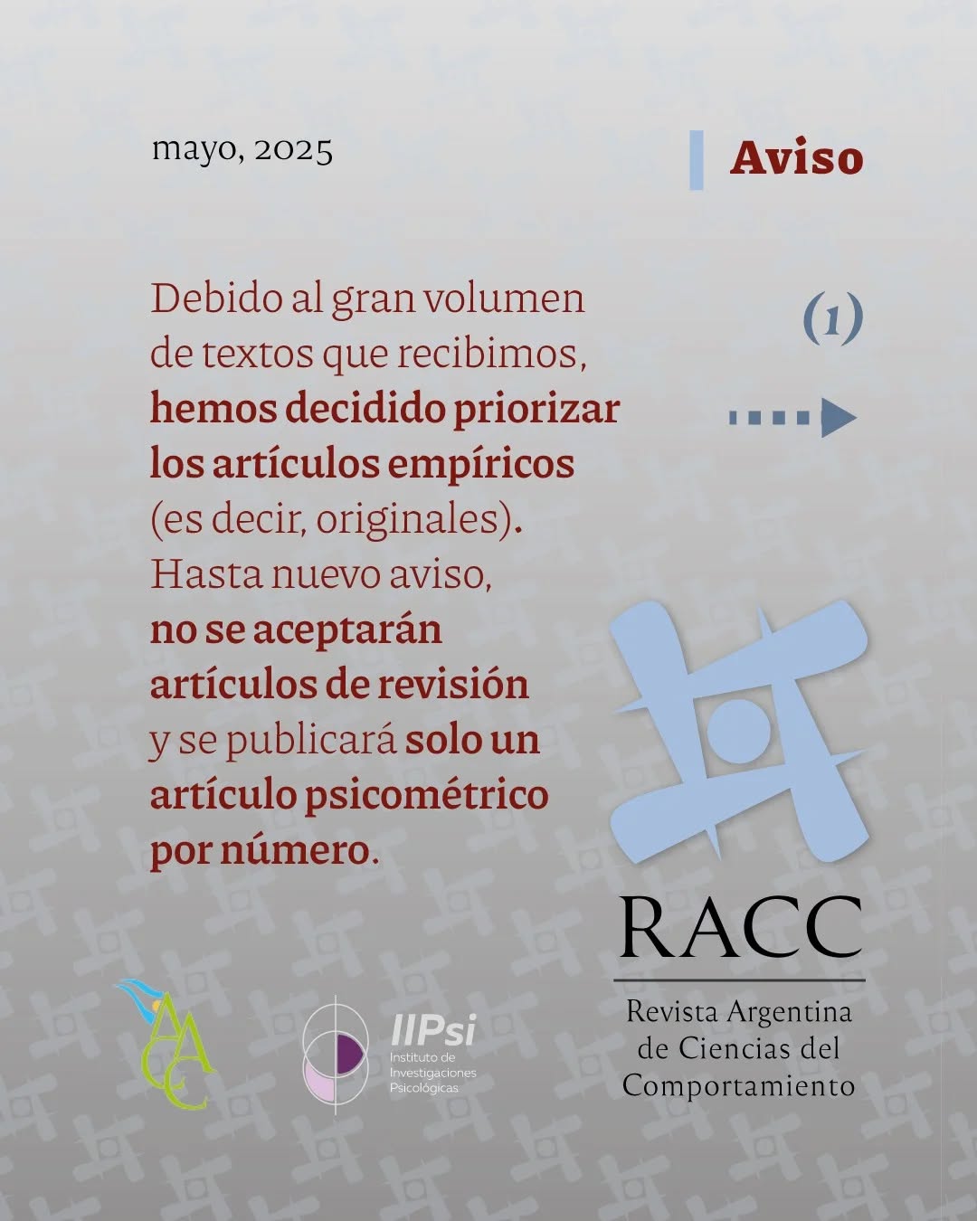 26 mayo, 2025 jcgodoy9 NOVEDADES sobre la Revista Argentina de Ciencias del Comportamiento Comparte: Haz clic para compartir en X (Se abre en una ventana nueva) X Haz clic para compartir en Facebook (Se abre en una ventana nueva) Facebook Me gusta Cargando...